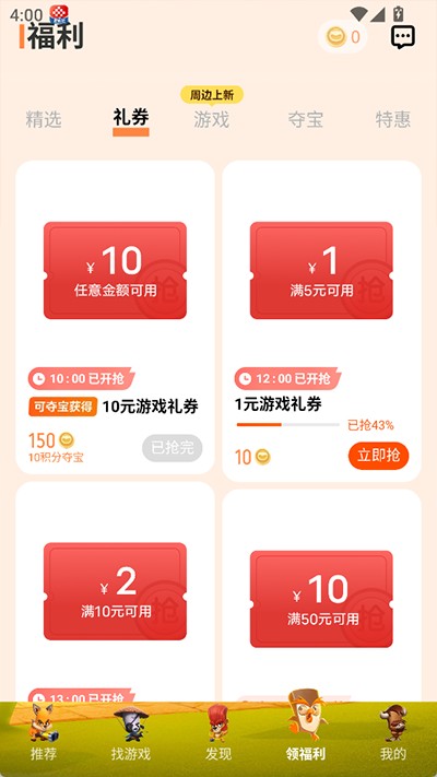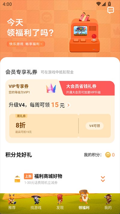 3、在领福利界面,大家可以点击我的游戏福利,领取该游戏的专属福利。