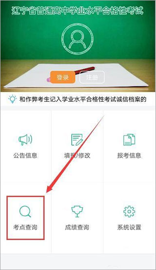 2、在辽宁学考APP中点击【考点查询】;