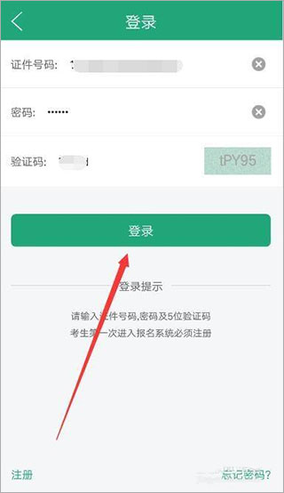 打开网上报名系统,输入身份证号、密码和验证码,登录网上报名系统。