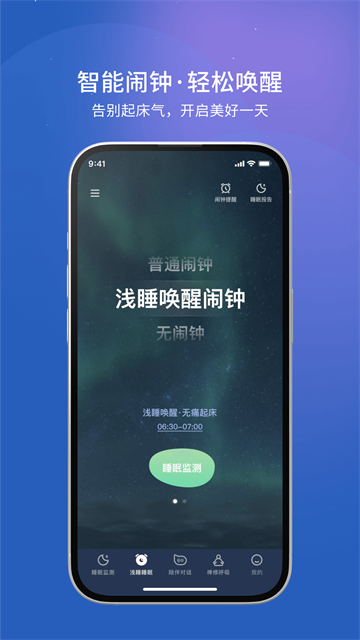 基于科学研究数据的定制叫醒闹钟,轻轻将你从浅睡中唤醒,让你摆脱早上被闹钟吵醒的烦恼,告别一觉醒来的坏心情和各
