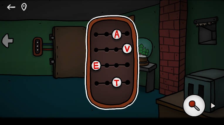 4、拿到操作杆后来到楼上墙面上有一串字母【EATV】记住字母旁边的顺序,拾取桌子底下的铲子