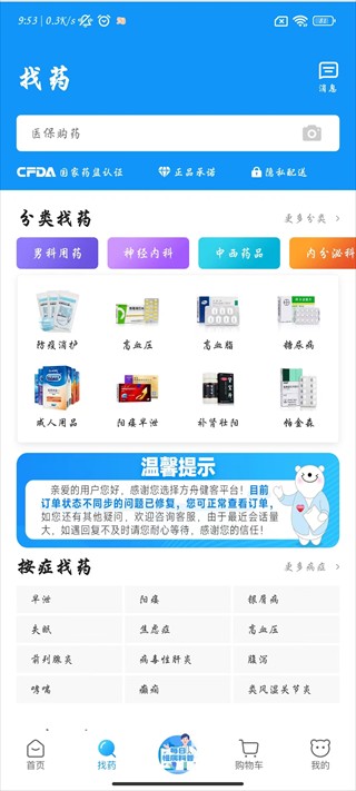 健康工具:支持拍照购买。通过扫描药品代码,您可以购买药品。支持根据症状找药,使购买药品更加方便