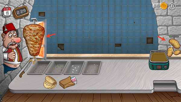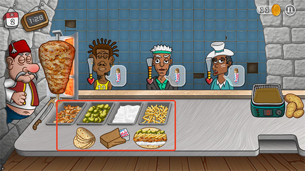 3. 有趣的卡通动画:享受动画带来你的沙瓦玛餐厅的生活。