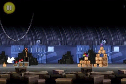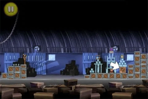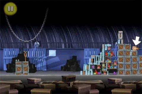 三、凤梨隐藏在箱子堆下右侧的箱子里头,同样贴了个标签。向高空发射一只蓝色的小鸟,如果它准确着陆了就可以炸开这个箱子。因为难度较大,所以你可能得多次连击,才有可能炸开箱子。