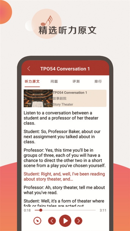 《托福听力》软件亮点: