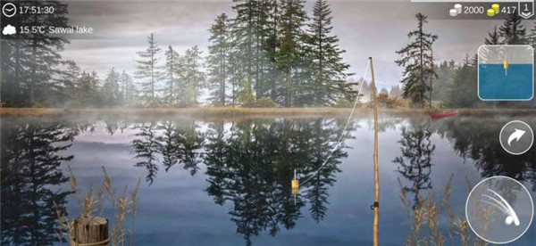 2、简单方便的操作模式,让玩家只需用手指轻敲屏幕即可享受钓鱼的乐趣。