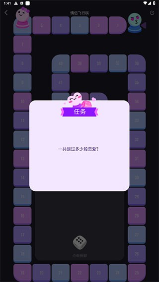 情侣飞行棋终极版是一款好玩的双人飞行棋游戏,游戏内容丰富,玩法多样,主要设计帮助情侣之间提高关系,对于喜欢玩双人或者破冰游戏的玩家不要错过这款游戏。