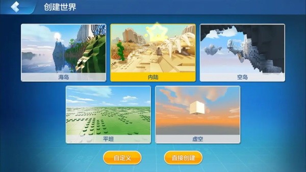 首先,选择我们熟悉的开发者模式,再选择搭建模式并选择一个世界模板开始编辑,这里我们以内陆模板为例,选择自定义模式,对内陆世界进行地形大改造!