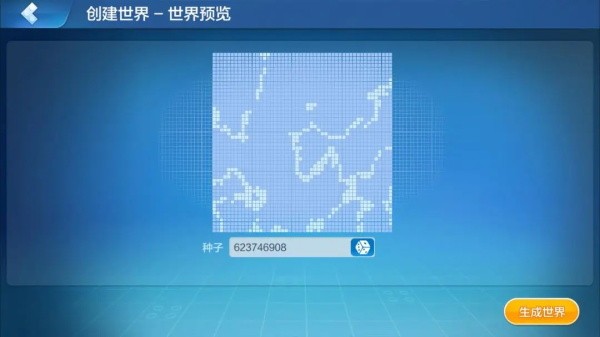 当以上这些内容都调整完后,点击保存后可以通过世界预览功能观察世界的整体情况,点击骰子可以改变地形的大致分布情况。选择好自己满意的分布情况后,点击生成世界就大功告成啦,独特的冰雪世界就会展现在我们的眼前咯!