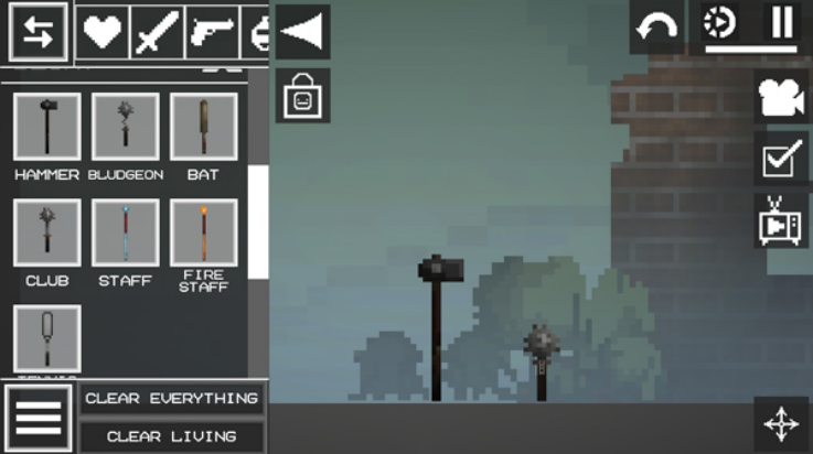 2、进入游戏如图,点击左上角菜单按钮,添加两个物品在地上;