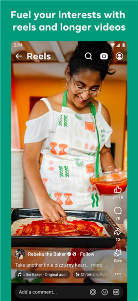 4. 主页上的“动态流”会根据用户的兴趣推送好友动态、全球热门新闻以及名人及影响力人士的内容。它支持搜索特定主题以获取信息;还有一个“Reels”板块用于浏览短视频内容,涵盖娱乐、生活和知识等领域。
