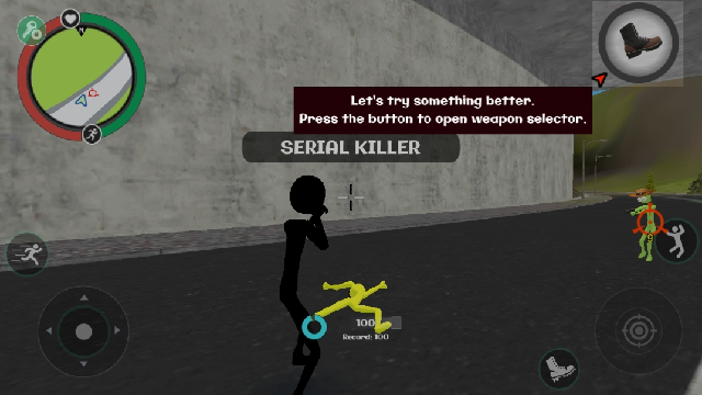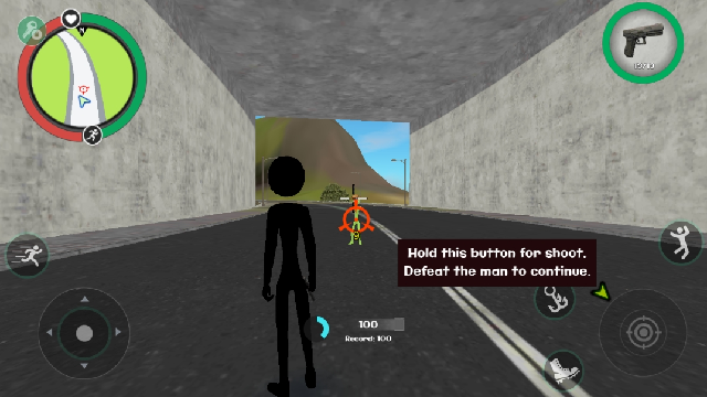 左侧移动、加速,右侧绳索,攻击(跳跃),跳跃,右上侧的武器更换以及血量、经验的显示都实时更新,一览无遗,凭借着大家自由的玩法,与其他帮派的人物进行交火,期间杀人能够获得经验,杀多了会产生星级,警察和其他附近角色会特殊照顾你对你展开火热的进攻,而如何存活,如何将其他人物击杀则是你所需要完成的任务。