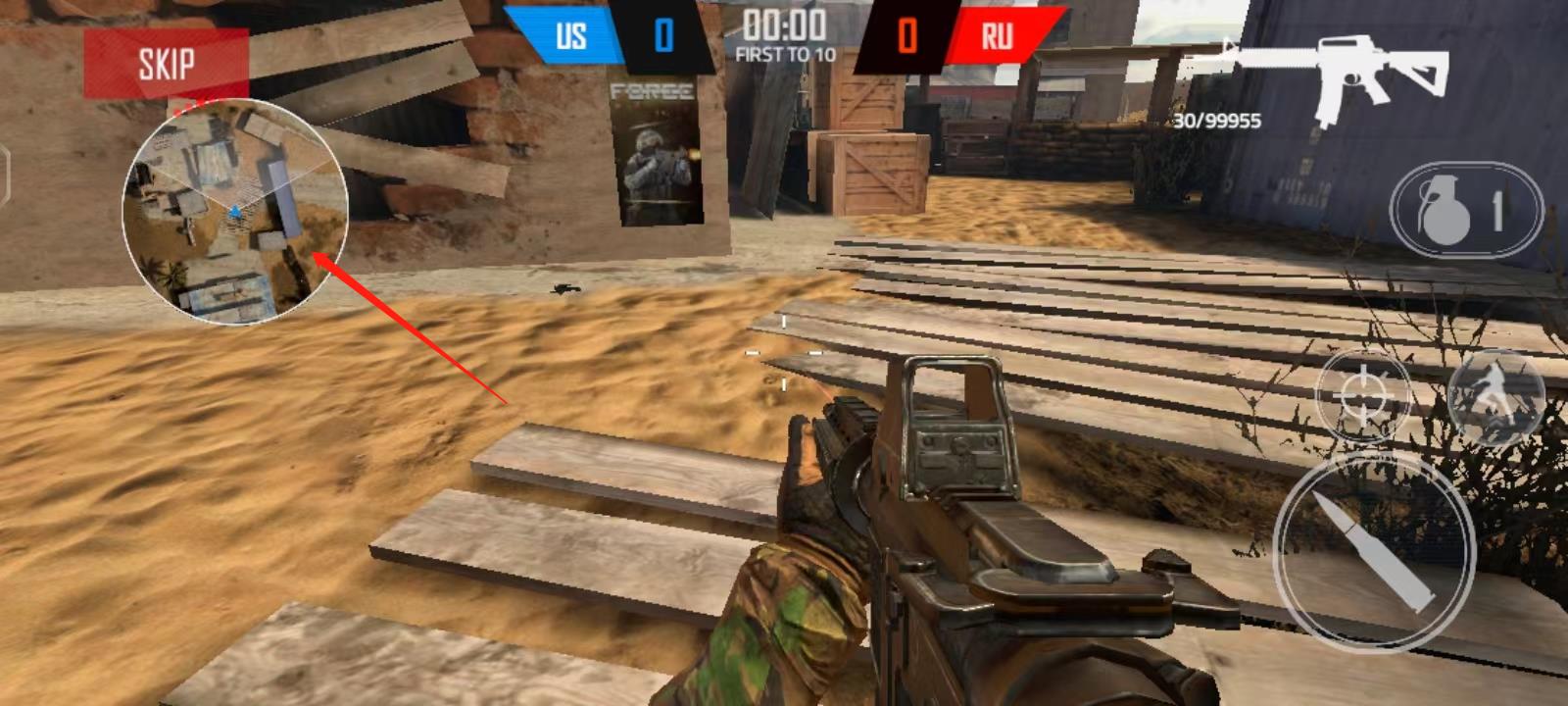 3、当全部完成以后,我们可以查看左边的地图,红色的点就代表敌人的方向;