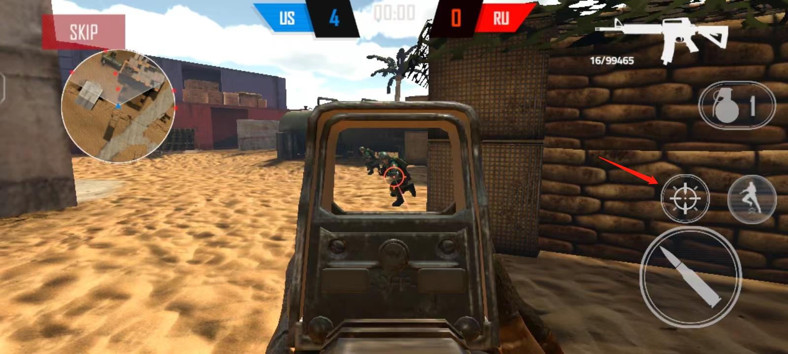 4、当遇到敌人的时候,我们可以开镜瞄准敌人,然后进行射击;