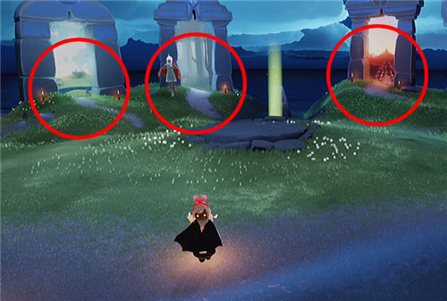 1、找到每一关的子民,穿过艰难险阻,最终跪坐在石碑前接受祝福,就是通过这一关了。通关后我们会来到一个祭坛,从这个祭坛周围的门前往下一关或是回到遇境。