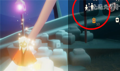 3、找到黄色人影,与它们互动 收集“光之翼”,我们的 飞行技能就可以得到 升级――斗篷背后 星星的数量就代表我们的飞行级别。