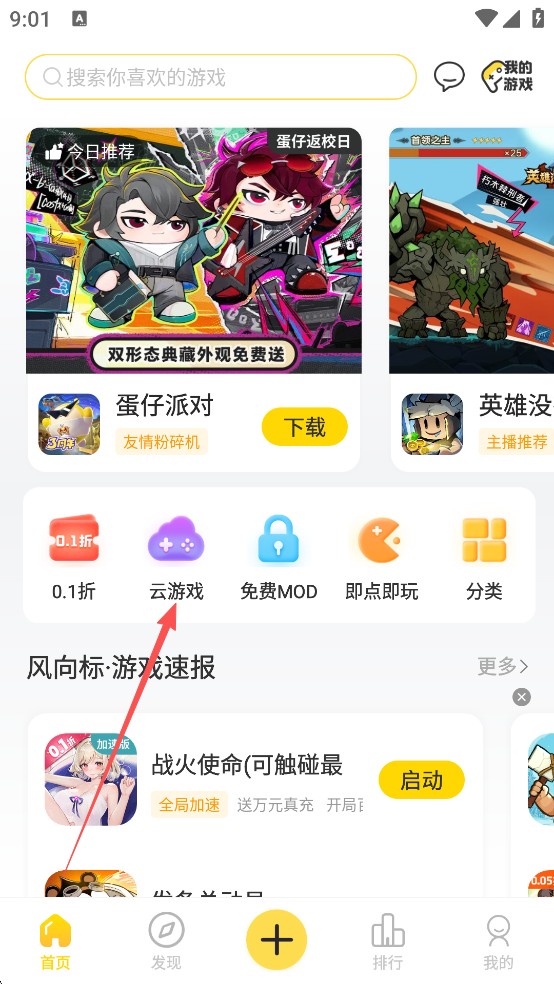 2、进入云游戏模块后,挑选喜欢的游戏。