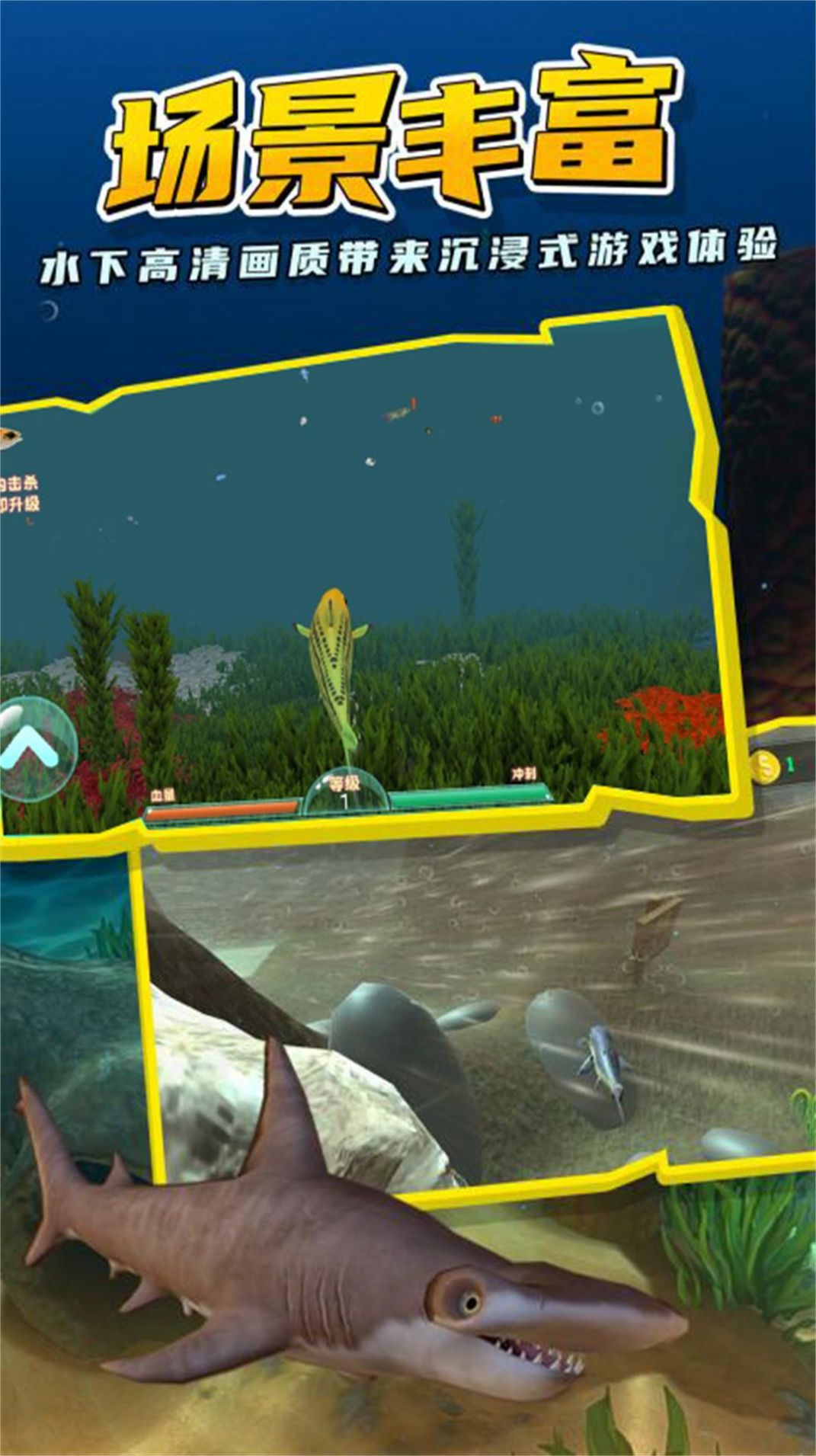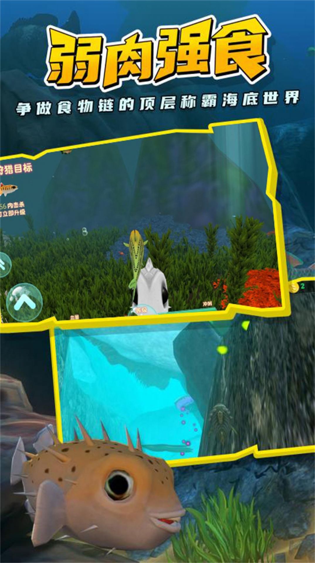 1. 海底巨兽鱼界争雄是一款生存模拟游戏。通过进食,你可以提升等级并解锁强大的技能,从而能够在水下环境中持续畅游。