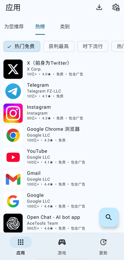1. Aurora Store是一个基于谷歌应用商店的第三方应用市场,涵盖了谷歌应用商店中各类可用的应用资源。通过它,用户可以自由下载大量的应用程序和手机游戏。